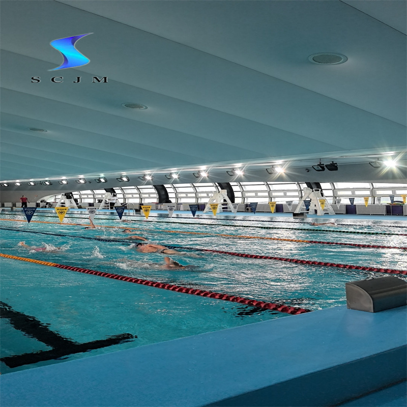 在標準泳池、跳水池、兒童戲水池等場景中,PVC膠膜形成無縫防水層,替代傳統(tǒng)瓷磚+防水涂料組合。以北京某奧運場館改造項目為例,采用1.5mm厚PVC膠膜后,施工周期縮短60%,防水層使用壽命延長至15年以上。材料表面經壓花處理,摩擦系數達0.6-0.8,符合國際泳聯防滑標準。